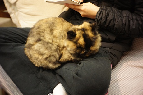 但即使我最偏愛童童,偶爾當我自己能量低落、情緒暴躁的時候,也會克制不住拿她出氣,但她總是一而再再而三地回到我懷中,換做夢夢或老老虎,早就躲得遠遠地。(這點我已經反省改進了,愛貓人士請別來檢舉我啊...)